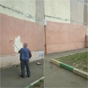 — Устранение вандальных надписей на фасаде дома (ул. Ленина, 30).